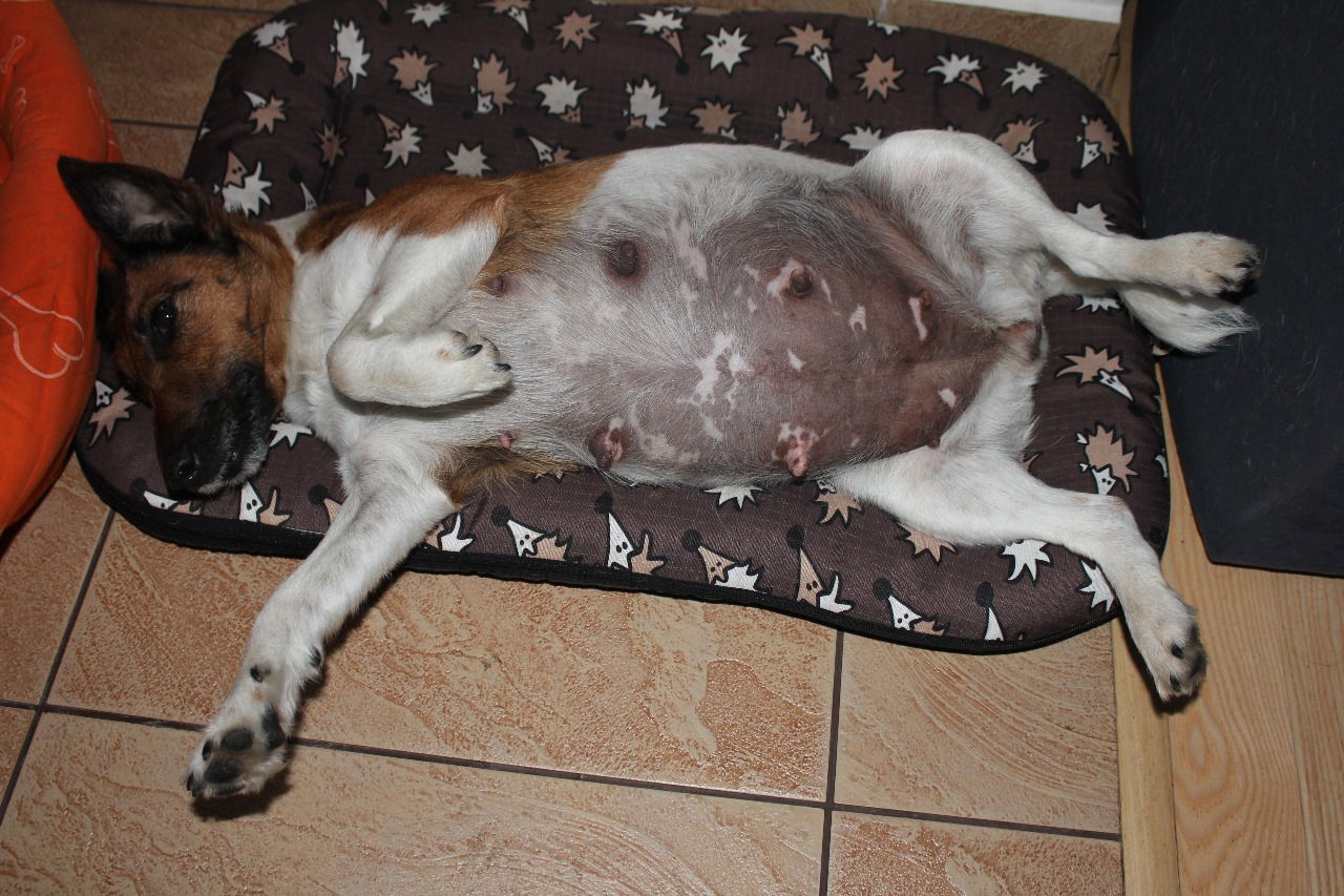 Efra má břicho už opravdu veliké a mrňata začínají pěkně kopat.